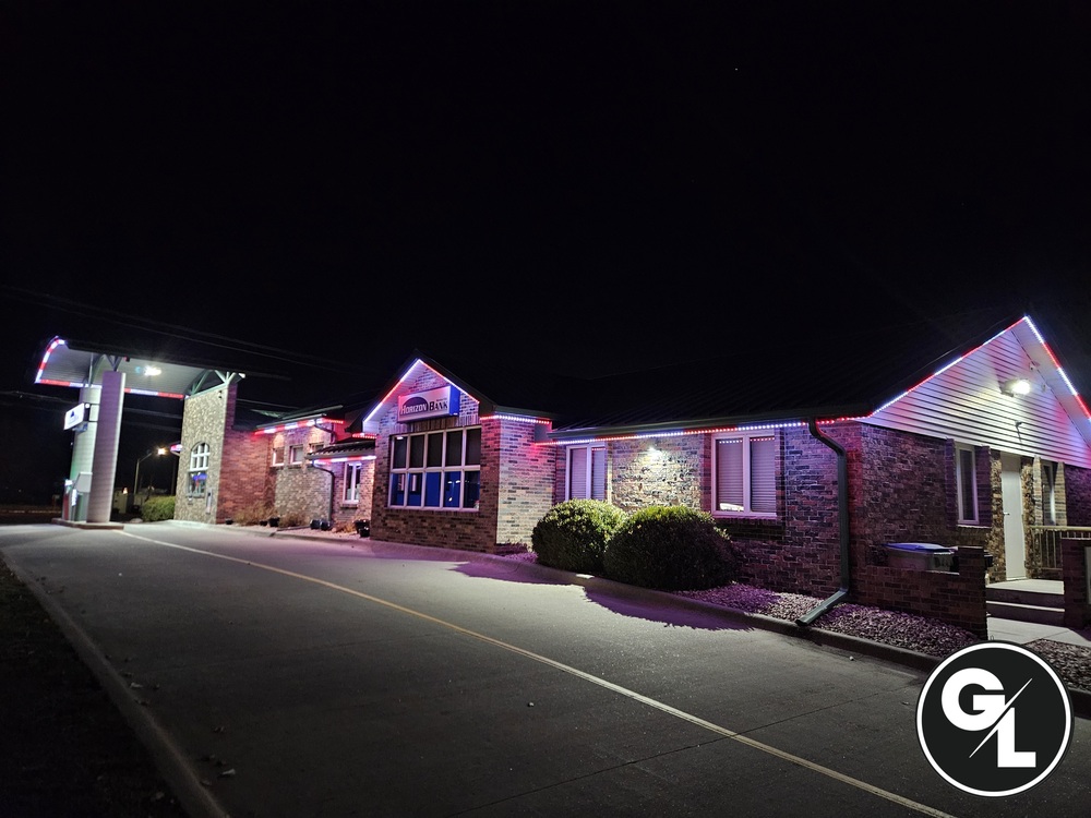 Illuminate your building's exterior and boost visibility with our expertly installed, programmable permanent outdoor lights. Whether in Lincoln, Omaha, or the surrounding areas of Nebraska, we cater to your needs, whether you aim to captivate with vibrant brand colors or prioritize security with strategic lighting placements. The mobile app puts customization at your fingertips, allowing you to create tailored colors, patterns, schedules, and timers. Let your establishment shine with brilliance and distinction courtesy of Get Lit's professional permanent lighting services.